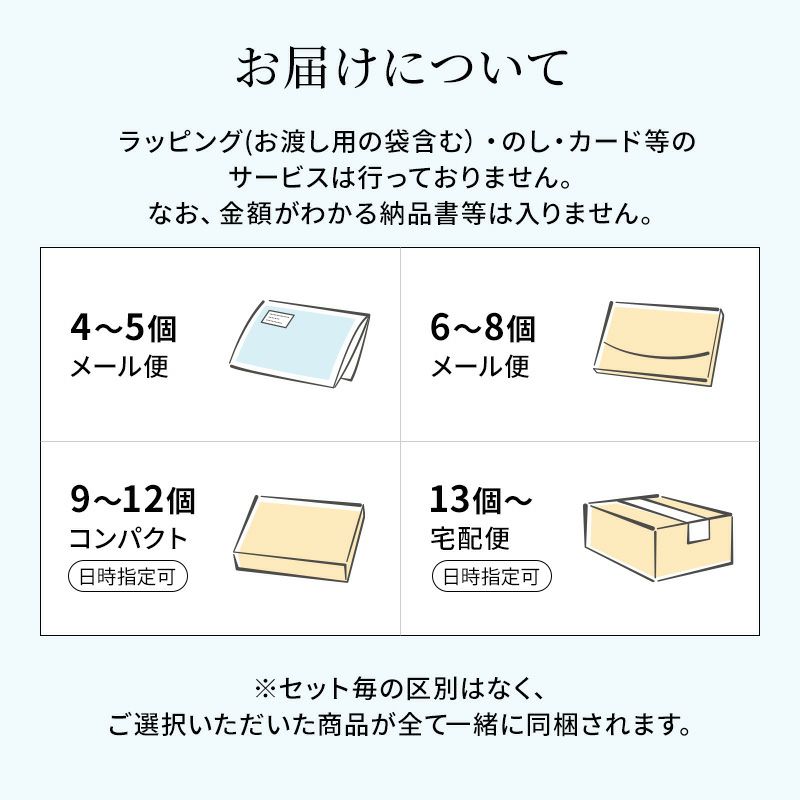 4個Pack×9袋以上、箱入りギフト、カップ/ボトルなど、商品やご注文の組み合わせがネコポスのサイズを超える場合、自動的に宅急便での配送になります。